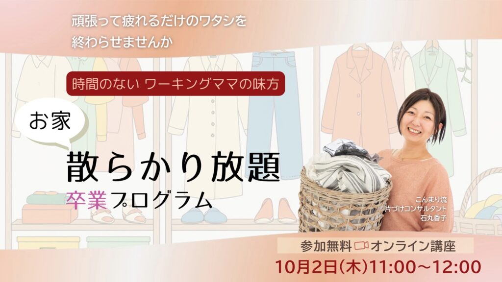 この、オンライン講座では、片づけの「間違い」や「つまずきポイント」を明らかにし、片づけに対するイメージをガラッと変えるヒントをお伝えします。